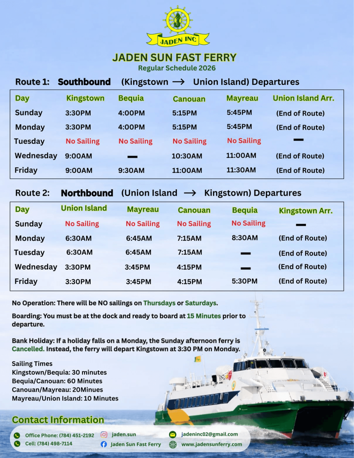 Please be advised that Jaden Sun Fast Ferry service is currently suspended until further notice.